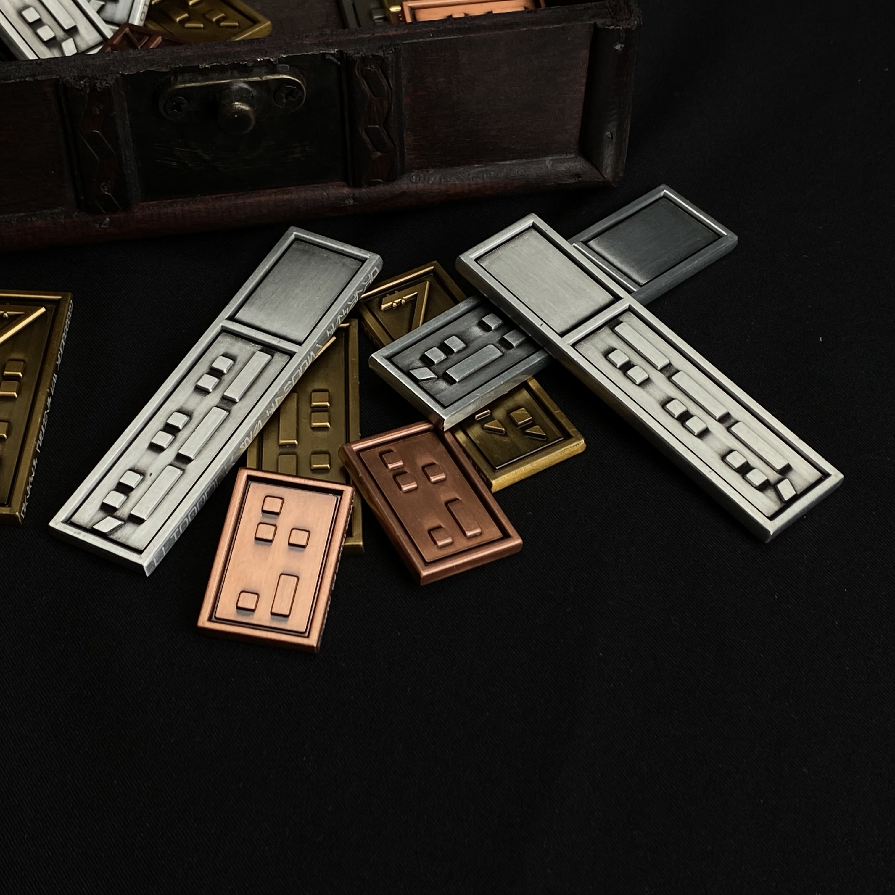 Die Imperiale Notenbank freut sich, Ihnen eine einzigartige Gelegenheit zu bieten: Erwerben Sie ein vollständiges **Saabac-Set**, das als Spielgeld Repliken der längst deaktivierten Republikanischen Credits enthält. Dieses Set besteht aus insgesamt **70 metallischen Spielmünzen**: